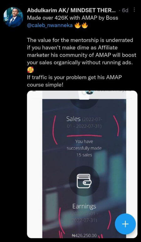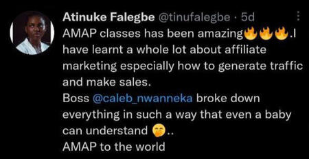 I select a product of choice from my dashboard.And by implementing the training I got from the AMAP Course, I will recommend this product to people who need it.If this person buys it, I get paid N25,000 (assuming that’s my commission)So if I want to make N250,000 per month, I have to sell 10 of this product.To make 500k a month, I’ve to sell just 20.And remember these products no dey finish.So I can just keep selling and keep earning.
