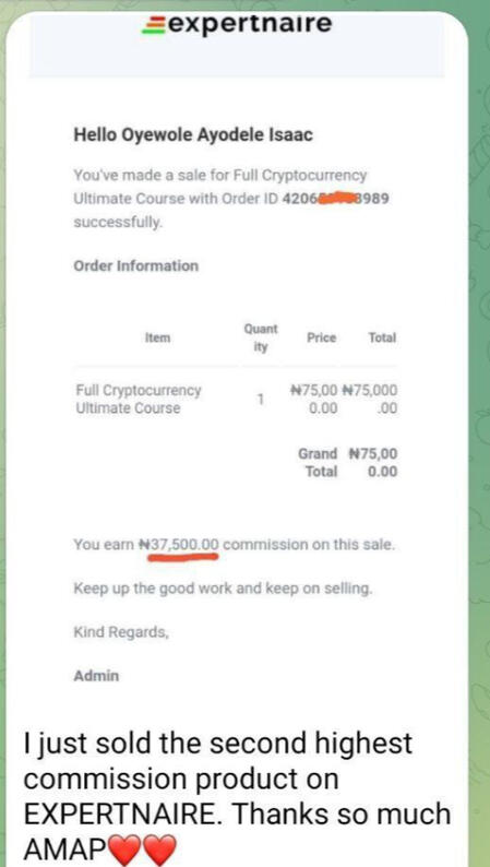 It is a training that help you 10x your sales as an affiliate on Expertnaire. This course teaches you how to make your first sale Even as a newbie who doesn't know anything in the internet space